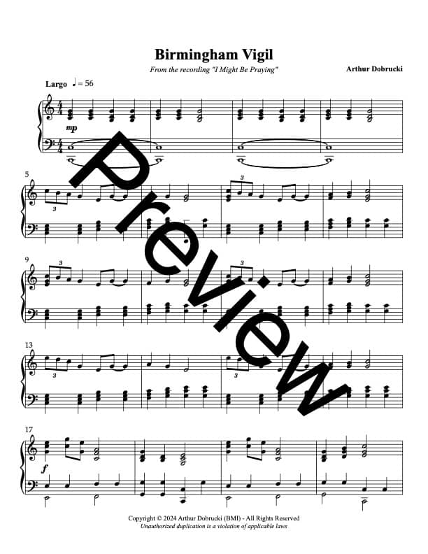 Birmingham Vigil for piano solo - as featured on the album "I Might Be Praying" by Arthur Dobrucki