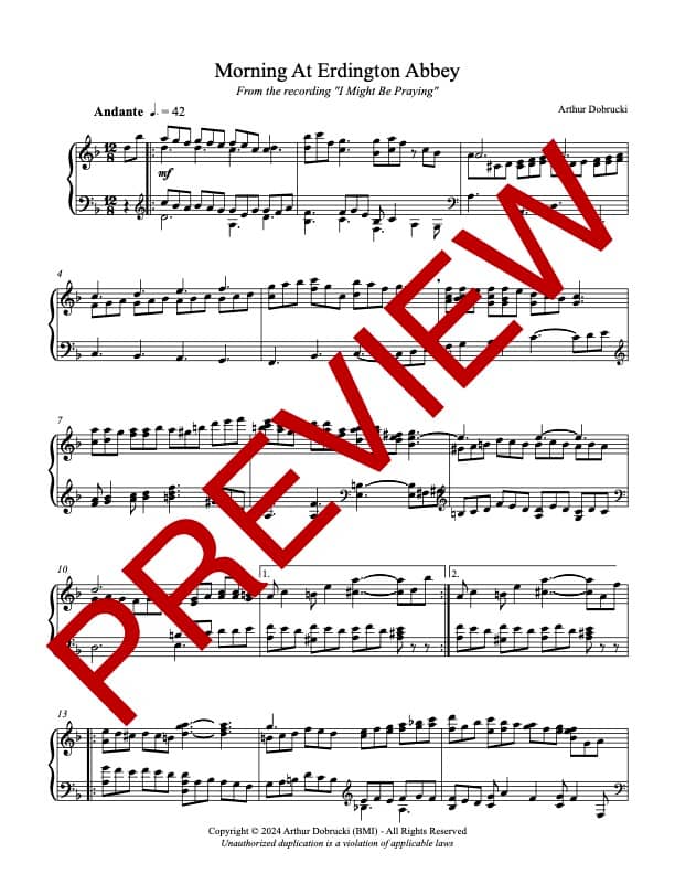 Music by Arthur Dobrucki for piano or portative organ. Morning at Erdington Abbey is the first work from the album "I Might Be Praying".